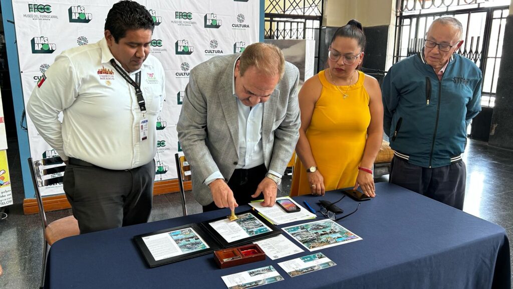 El miércoles 26 de marzo, el Museo del Ferrocarril «Jesús García Corona» en San Luis Potosí fue sede de un acto simbólico y cultural: la cancelación de una estampilla conmemorativa dedicada al Tren Maya, acto encabezado por el secretario de Cultura Mario García Valdez, la directora general del museo Juana Idalia Gallegos Barrón, el Gerente Estatal del Servicio Postal Mexicano Adán Acuña Ramírez y el representante de los Jubilados Ferrocarrileros del STFRM Sección 24, Contador Carlos Calderón Otero.